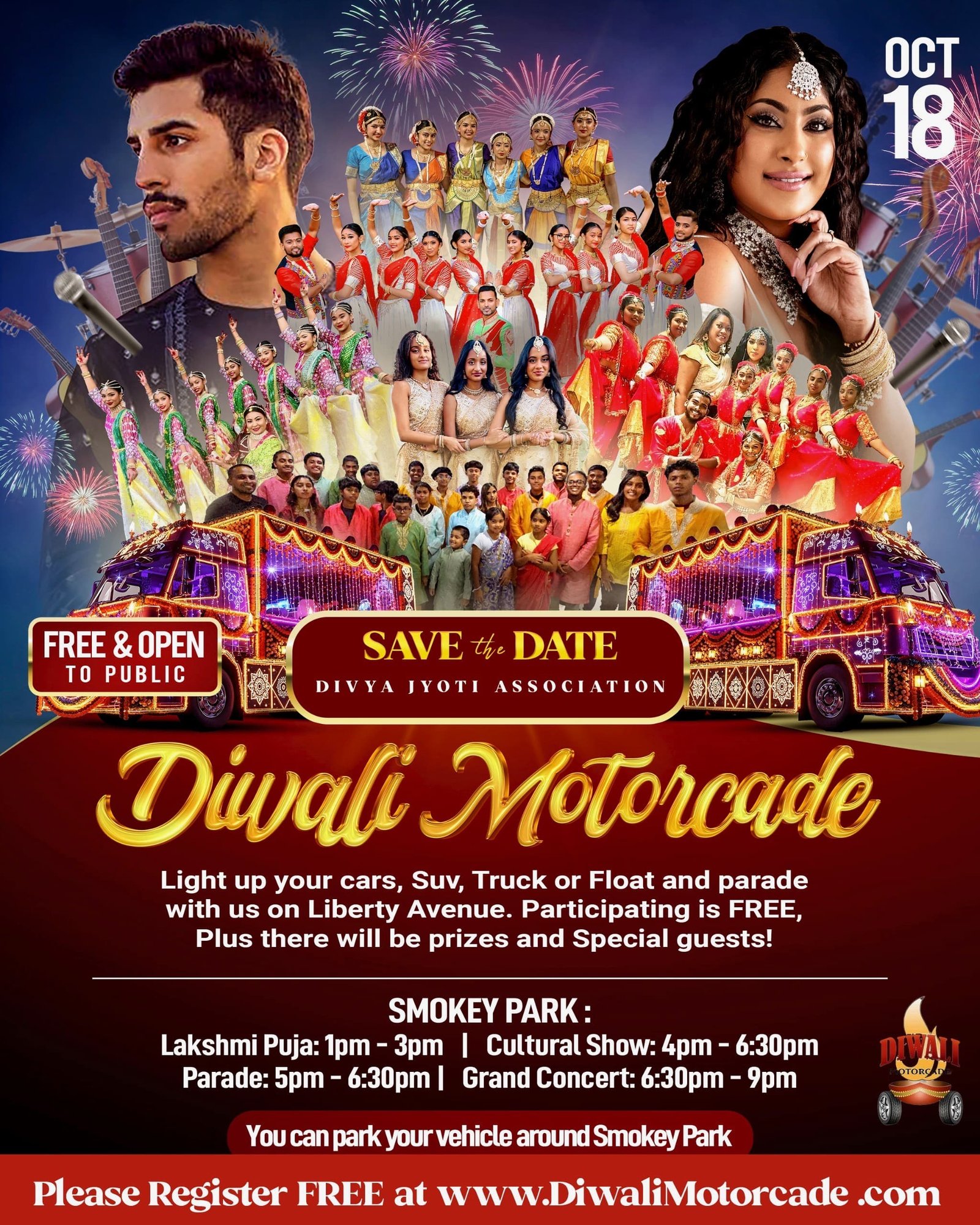 Divya Jyoti Association of New York are thrilled to announce the spectacular return of the Diwali Motorcade—a dazzling procession where cars, trucks, and vehicles are transformed into glowing works of art. Celebrate tradition, community, and the Festival of Lights in a spectacular way that unites families and friends.